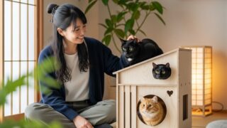 猫との暮らし猫のキャットハウス徹底解説!隠れ家と遊び場を兼ね備えた快適空間の選び方 愛猫が心から安心できる隠れ家、そして思いっきり遊べる遊び場。キャットハウスは、猫の心と体の健康に不可欠なアイテムです。種類、選び方、設置のコツまで、理想のキャットハウスを見つけるための完全ガイド。猫との暮らし