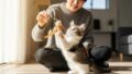 - 遊びの時間を設ける: 子猫にとって遊びは運動だけでなく、ストレス解消や社会性を学ぶ重要な時間です。猫じゃらしなどで毎日時間を決めて遊んであげましょう。